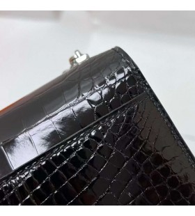 Verrou Touch Chevre A Lesklý Alligator Krokodýl Ck89 Černá Stříbrná Hardware 17,5 cm Full Ruční Phw