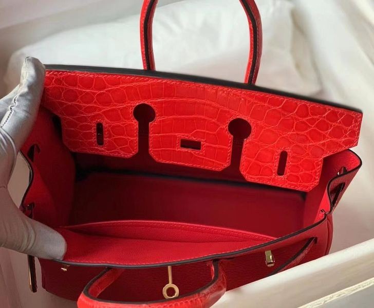 - Birkin Togo & λαμπερά κροκόδειλος φωτεινό κόκκινο Χρυσό Υλικό 25cm Πλήρες Χειροποίητο