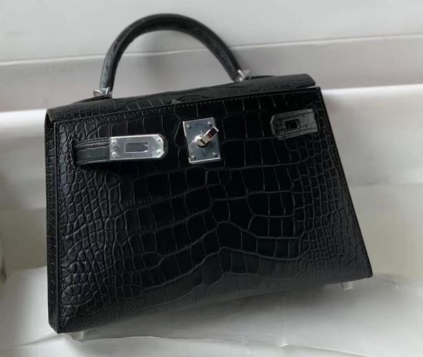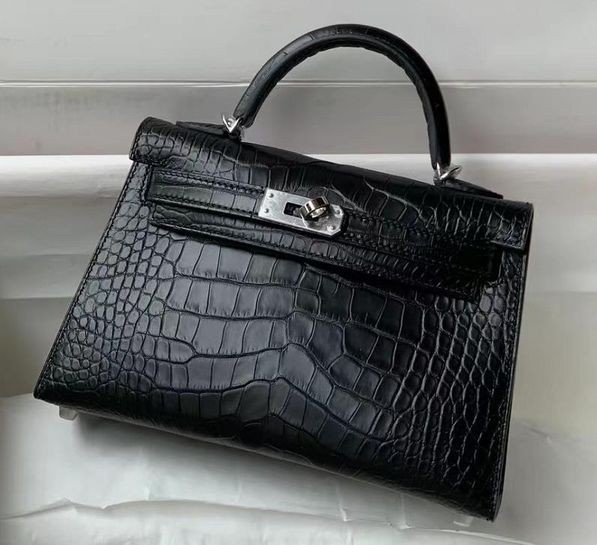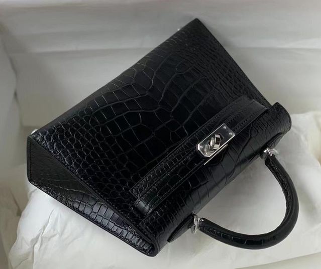 Mini Kelly Alligator Matte Black Silver Hardware 19cm Full Handmade