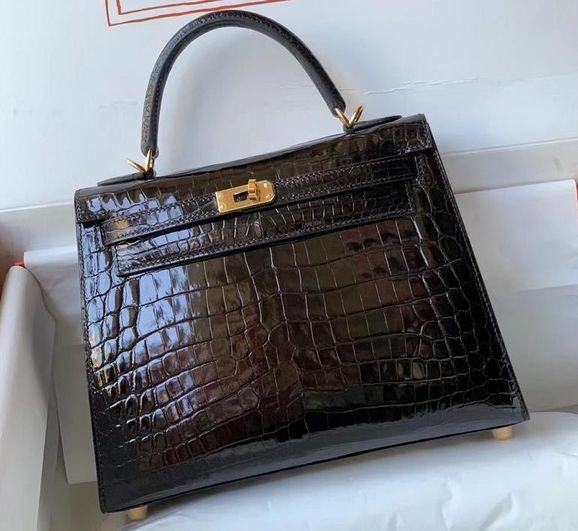Kelly Alligaattori Kiiltävä Musta Kulta Laitteisto-25cm Koko Käsintehty