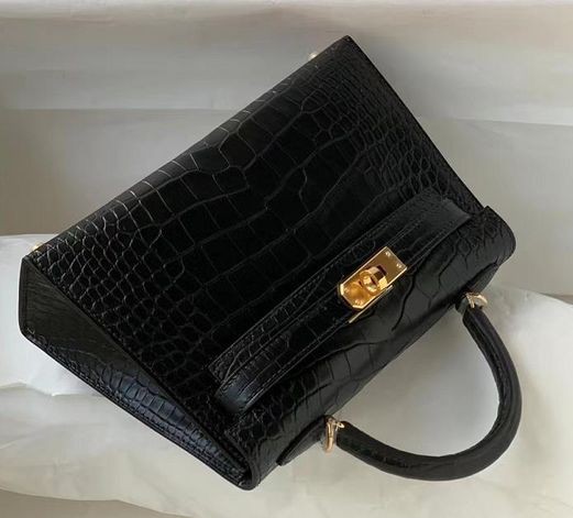 Mini Kelly Ailigéadar Neamhlonrach Dubh Crua-earraí Óir 19cm Hiomlán Lámhdhéanta