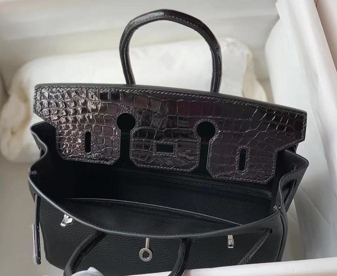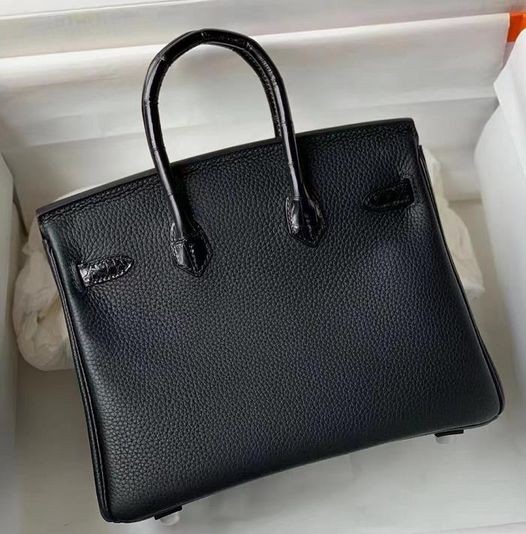 Birkin Touch Togo & lucido coccodrillo Nero Argento Hardware 25cm Pieno fatto a Mano