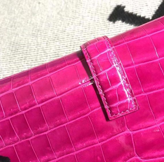 jige lucido coccodrillo Opaco Rose red wallet 29cm Pieno fatto a Mano