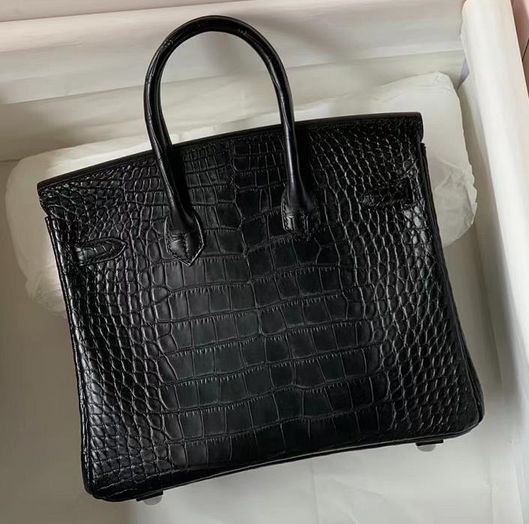 Birkin Aligator Negru Mat de Argint Hardware 25cm Full Manual