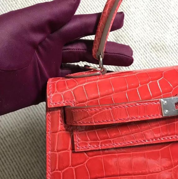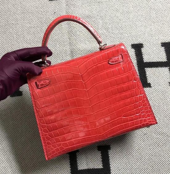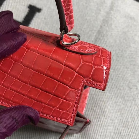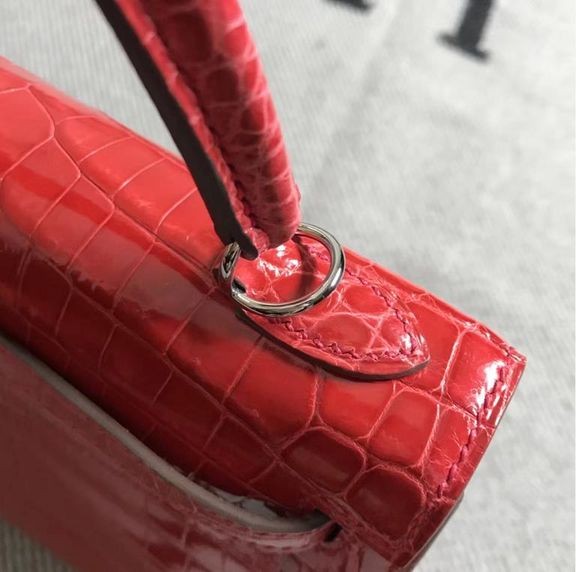 - Kelly Alligator Lesklé Ferrari red Strieborná Hardvéru 25 cm Full Ručné